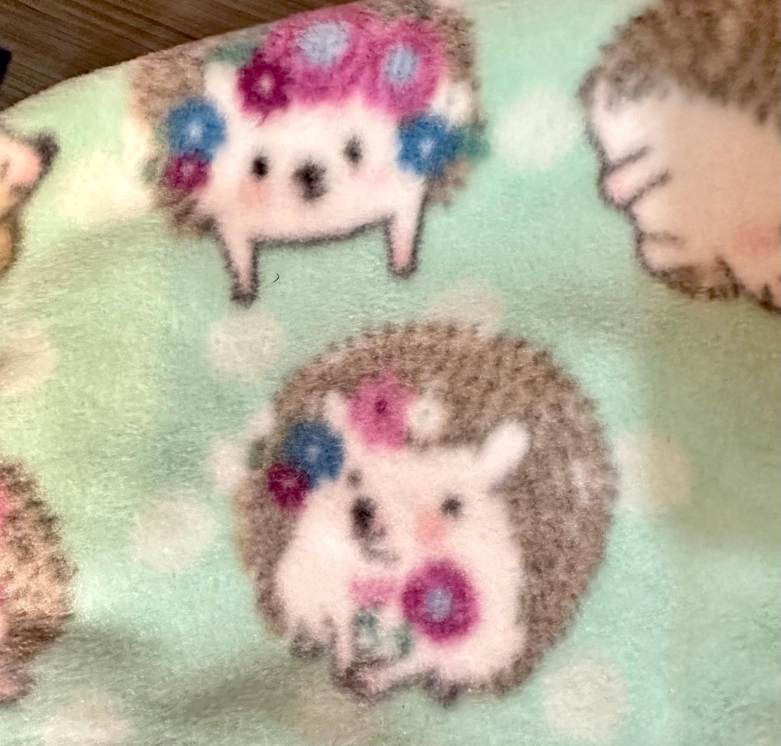 Hedgehog fleece with dark blue backing. Blanket has two layers of anti-pill plush fleece.